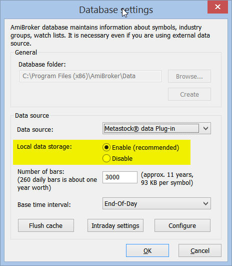 Now, if we want to backup the data from an external data source, and use them offline, first we need to make sure that actual data are copied into AmiBroker’s local database.